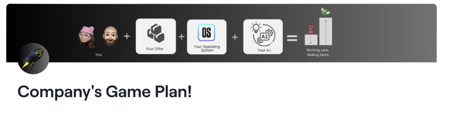 By following the Company Game Plan, you’ll be able to work less and achieve more, leveraging your offer, operating system, and AI.